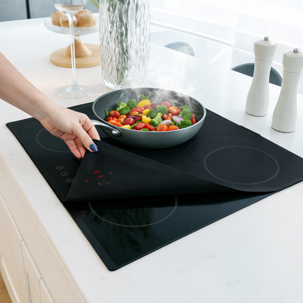 - Ochrona przed Zarysowaniami: Delikatna powierzchnia maty chroni Twoją płytę indukcyjną przed zarysowaniami, zadrapaniami i uszkodzeniami. Zapewnia to długotrwałą trwałość Twojego sprzętu kuchennego.